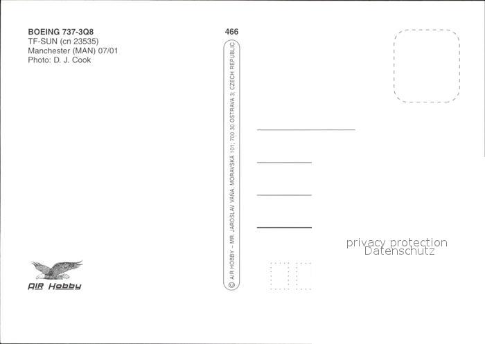 Flugzeuge Zivil Sunbird Boeing 737-3Q8 TF-SUN cn 23535 postalisch nicht gelaufen Erhaltung siehe scans