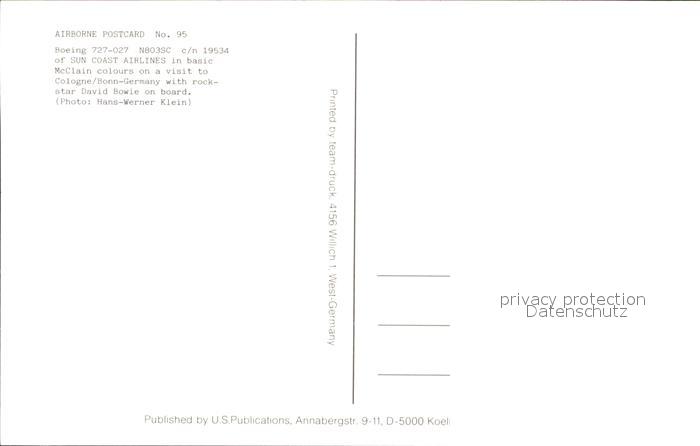 Flugzeuge Zivil SunCoast Boeing 727-027 N803SC c/n 19534 postalisch nicht gelaufen Erhaltung siehe scans