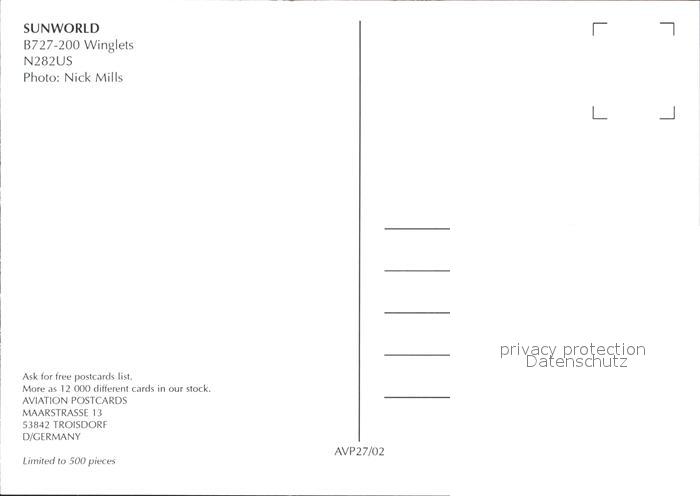 72216717 Flugzeuge Zivil Sunworld B727-200 Winglets N282US KatCode 22120000001300