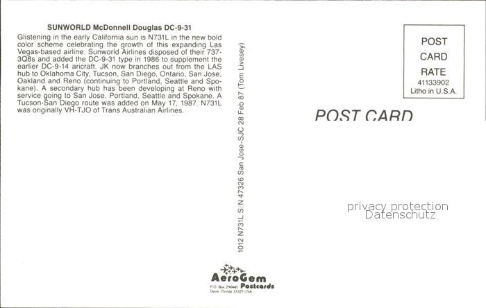 Flugzeuge Zivil Sunworld McDonnell Douglas DC-9-31 N731