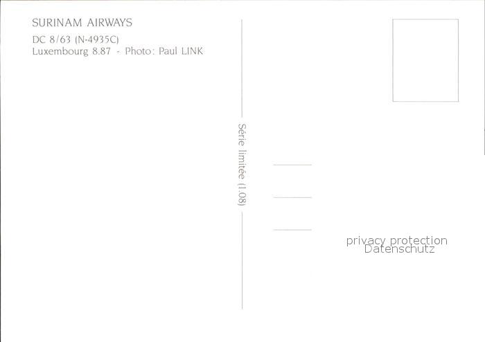 Flugzeuge Zivil Surinam Airways DC8-63 N4935C postalisch nicht gelaufen Erhaltung siehe scans