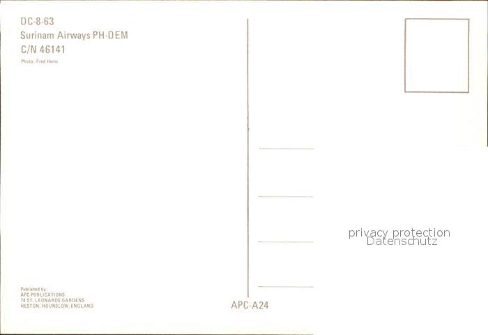 Flugzeuge Zivil Surinam Airways PH-DEM DC-8-63 c/n 46141 postalisch nicht gelaufen Erhaltung siehe scans