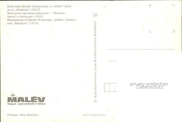 Flugzeuge Zivil Svachulay Sandor Monoplanjai Kolibri Albatrosz Akos Banfalvy postalisch nicht gelaufen Erhaltung siehe scans