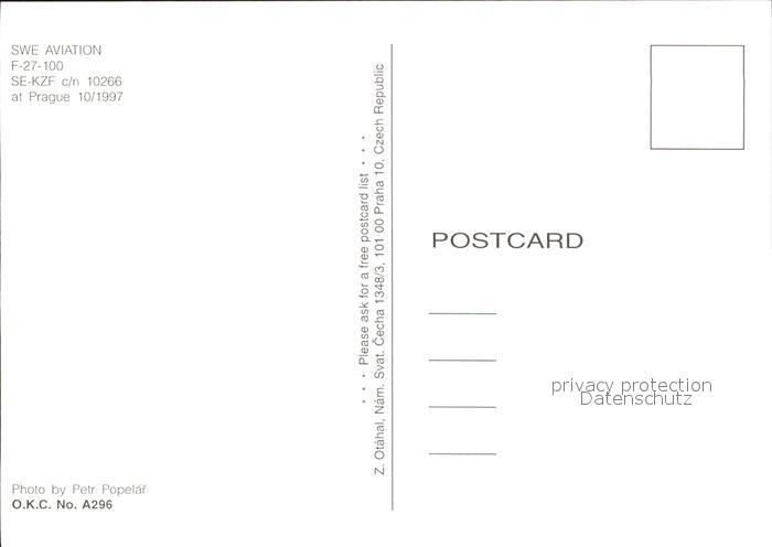 Flugzeuge Zivil Swe Aviation F-27-100 SE-KZF c/n 10266 postalisch nicht gelaufen Erhaltung siehe scans