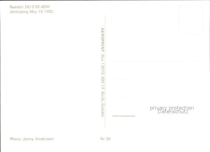 Flugzeuge Zivil Swedair DC-3 SE-BSM postalisch nicht gelaufen Erhaltung siehe scans