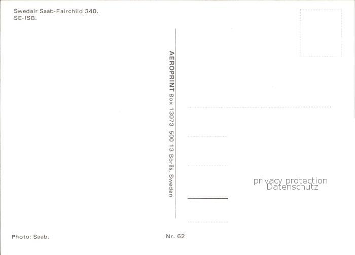 Flugzeuge Zivil Swedair Saab-Fairchild 340 SE-ISB postalisch nicht gelaufen Erhaltung siehe scans