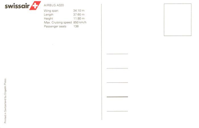 73932452 Flugzeuge Zivil Swissair Airbus A320 postalisch nicht gelaufen Erhaltung siehe scans [IrynaD87] KatCode: 22120000001300