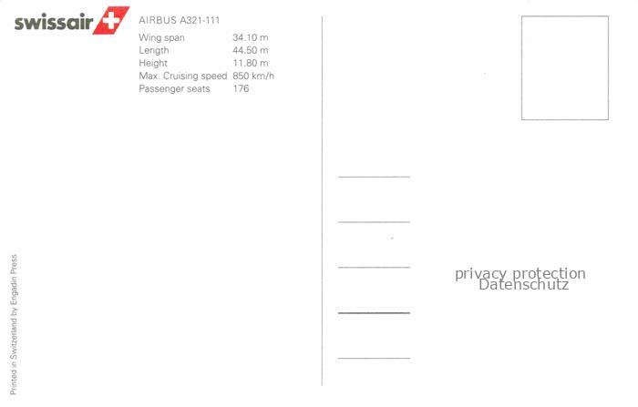 74064584 FLUGZEUGE ZIVIL Swissair Airbus A321-111 postalisch nicht gelaufen Erhaltung siehe scans [SanaeD93] Sana Katcode 22120000001300