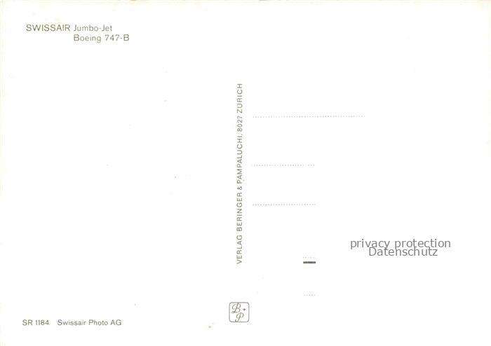 74096530 FLUGZEUGE ZIVIL Swissair Jumbo-Jet Boeing 747-B postalisch nicht gelaufen Erhaltung siehe scans [SanaeD93] KatCode: 22120000001300