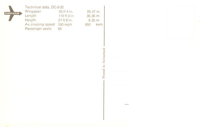 73929186 Flugzeuge Zivil Swissair Technical date DC-9-32 postalisch nicht gelaufen Erhaltung siehe scans [IrynaD87] KatCode: 22120000001300
