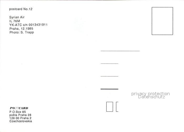 Flugzeuge zivil Syrian Air Il 76M YK-ATC c/n 0013431911 Praha postalisch nicht gelaufen Erhaltung siehe scans