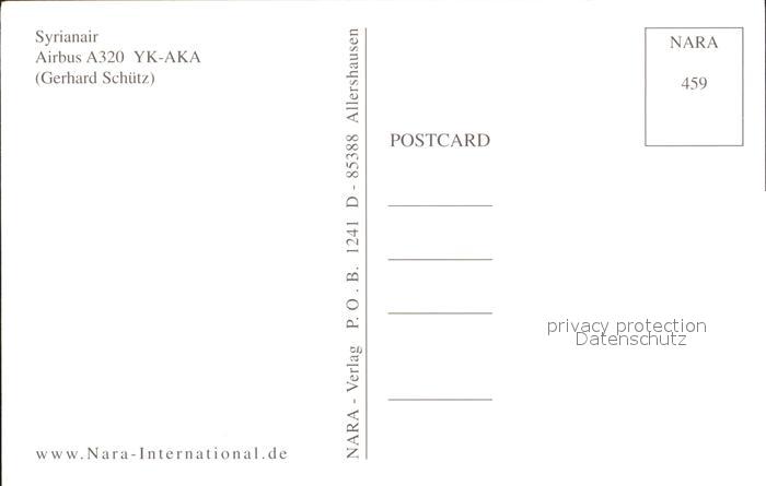Flugzeuge Zivil Syrianair Airbus A320 YK-AKA postalisch nicht gelaufen Erhaltung siehe scans