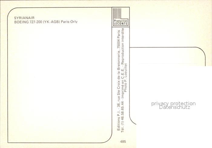 Flugzeuge zivil Syrianair Boeing 727-200 (YK-AGB) Paris Orly postalisch nicht gelaufen Erhaltung siehe scans