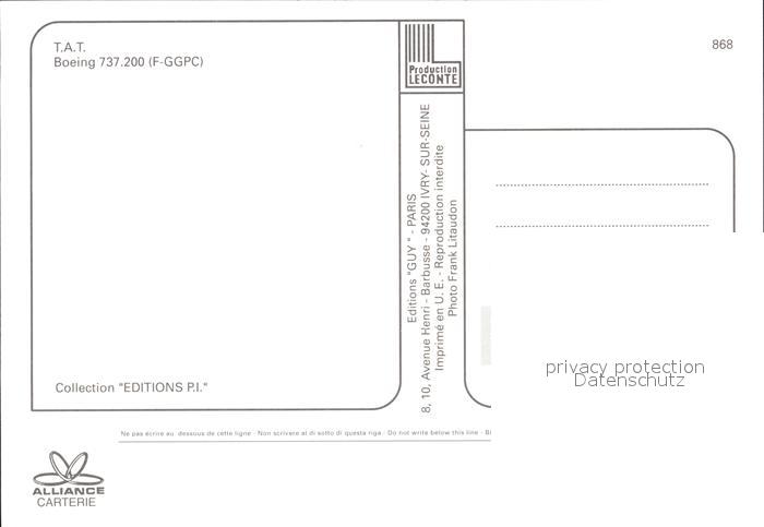 Flugzeuge Zivil T.A.T. Boeing 737.200 (F-GGPC) postalisch nicht gelaufen Erhaltung siehe scans