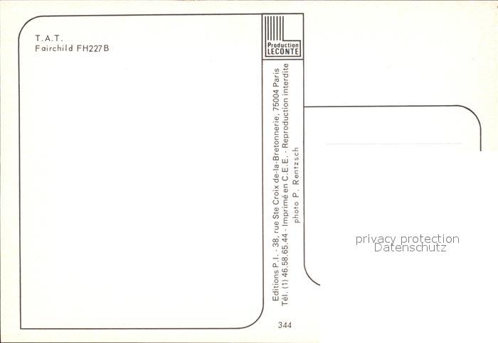 Flugzeuge Zivil T.A.T. Fairchild FH227B postalisch nicht gelaufen Erhaltung siehe scans
