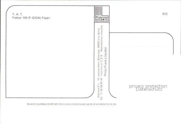 Flugzeuge Zivil T.A.T. Fokker 100 F-GIOA postalisch nicht gelaufen Erhaltung siehe scans