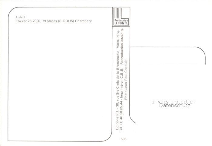 Flugzeuge Zivil T.A.T. Fokker 28-2000 F-GDUS postalisch nicht gelaufen Erhaltung siehe scans