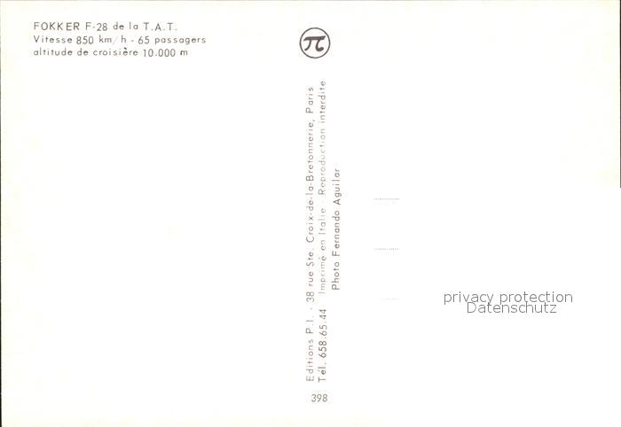 Flugzeuge Zivil T.A.T. Fokker F-28 postalisch nicht gelaufen Erhaltung siehe scans