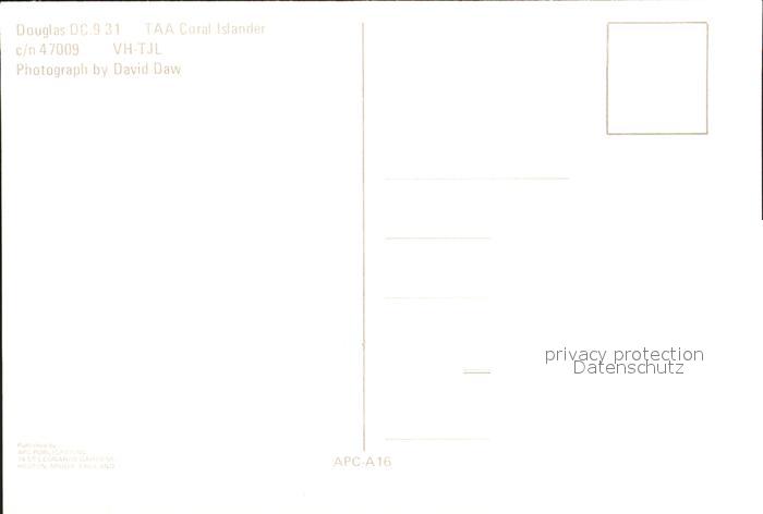 Flugzeuge Zivil TAA Coral Islander Douglas DC-9-31 VH-TJL c/n 47009 postalisch nicht gelaufen Erhaltung siehe scans