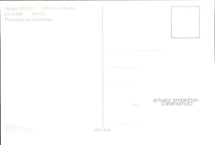 Flugzeuge Zivil TAA Coral Islander Douglas DC9-31 VH-TJL c/n 47009 postalisch nicht gelaufen