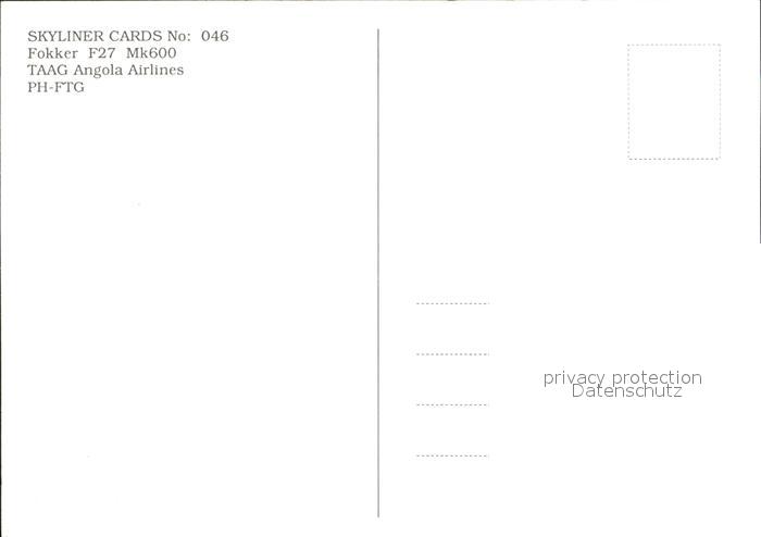 Flugzeuge Zivil TAAG Angola Airlines Fokker F-27 Mk600 PH-FTG postalisch nicht gelaufen Erhaltung siehe scans