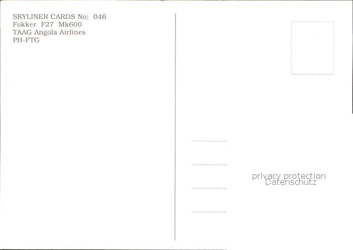 72290630 Flugzeuge Zivil TAAG Angola Airlines Fokker F27 Mk600 PH-FTG KatCode 22120000001300