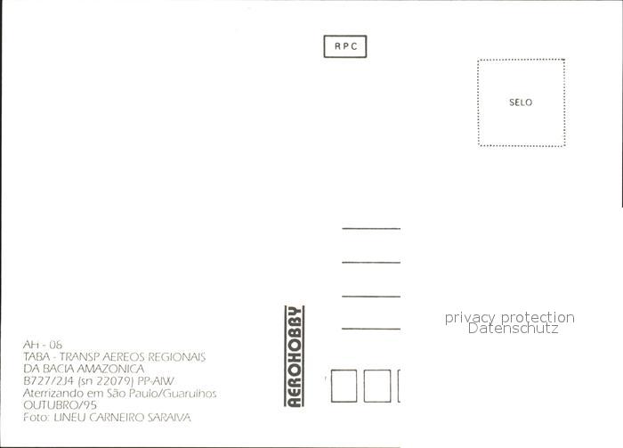 Flugzeuge Zivil TABA B727/2J4 PP-AIW postalisch nicht gelaufen Erhaltung siehe scans