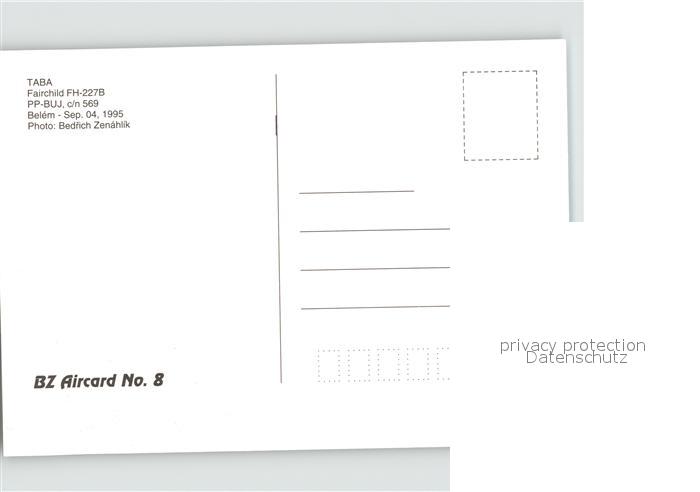 Flugzeuge Zivil TABA Fairchild FH-227B PP-BUJ c/n 569 postalisch nicht gelaufen Erhaltung siehe scans