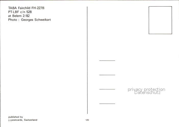 Flugzeuge Zivil Taba Fairchild FH-227B PT-LBF c/n 528 postalisch nicht gelaufen Erhaltung siehe scans