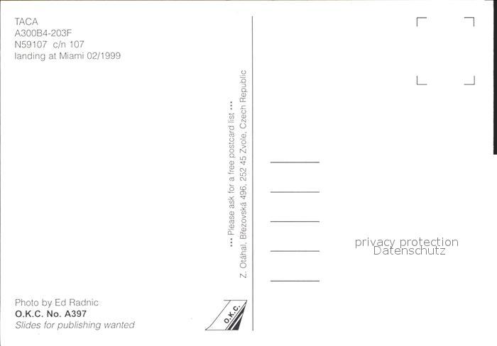 Flugzeuge zivil TACA A300B4-203F N59107 c/n 107 Miami postalisch nicht gelaufen Erhaltung siehe scans