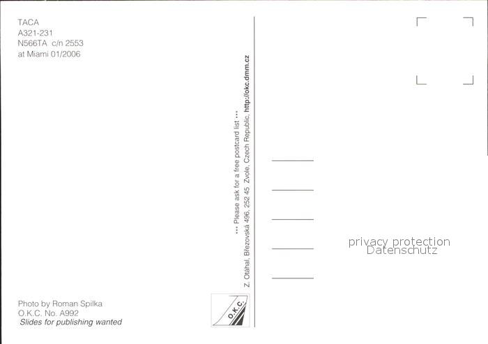 Flugzeuge Zivil TACA A321-231 N566TA c/n 2553 postalisch nicht gelaufen Erhaltung siehe scans