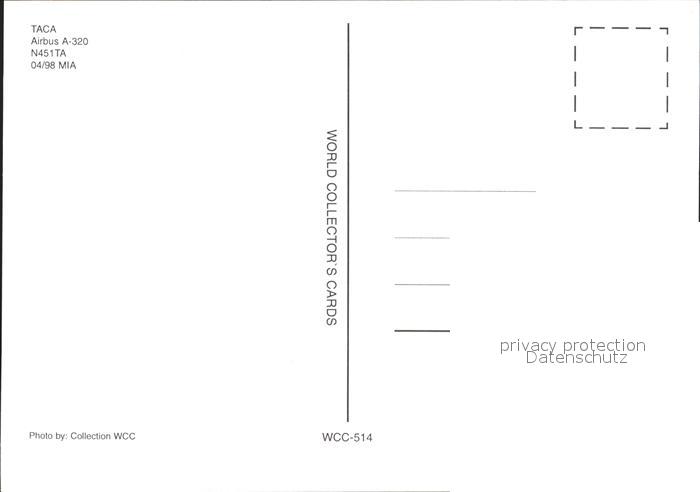 Flugzeuge zivil TACA Airbus A-320 N451TA Mia postalisch nicht gelaufen Erhaltung siehe scans