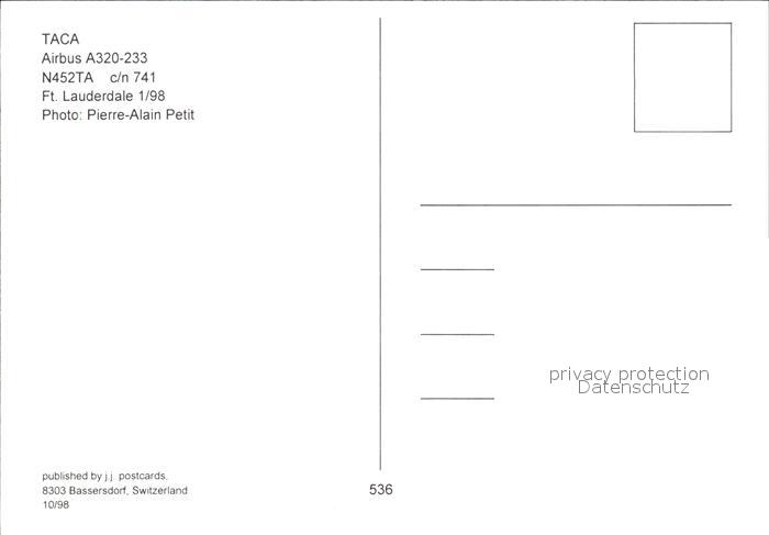 Flugzeuge Zivil TACA Airbus A320-233 N452TA c/n 741 postalisch nicht gelaufen Erhaltung siehe scans