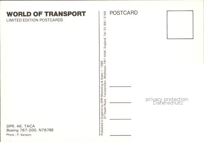 Flugzeuge Zivil Taca Boeing 767-200 N767BE postalisch nicht gelaufen Erhaltung siehe scans
