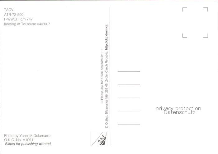 Flugzeuge Zivil TACV ATR-72-500F-WWEH c/n 747 postalisch nicht gelaufen Erhaltung siehe scans