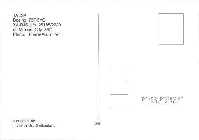 Flugzeuge Zivil Taesa Boeing 737-5YO XA-RJS c/n 25185/2220 postalisch nicht gelaufen Erhaltung siehe scans