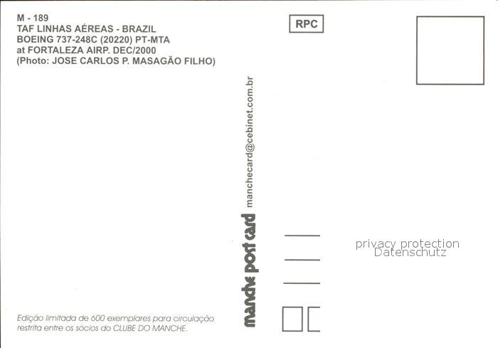 Flugzeuge Zivil TAF Boeing 737-248C 20220 PT-MTA postalisch nicht gelaufen Erhaltung siehe scans