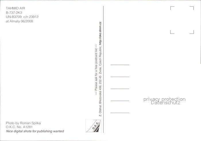 Flugzeuge Zivil Tahmid Air B-737-2K3 UN-B3709 c/n 23912 postalisch nicht gelaufen Erhaltung siehe scans