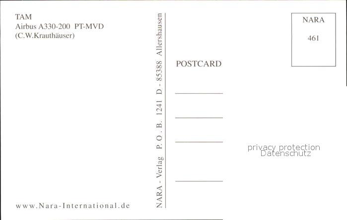 Flugzeuge Zivil TAM Airbus A330-200 PT-MVD postalisch nicht gelaufen Erhaltung siehe scans