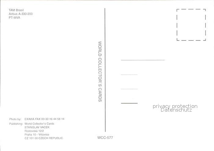 Flugzeuge Zivil TAM Brasil Airbus A-330-200 PT-MVA postalisch nicht gelaufen Erhaltung siehe scans