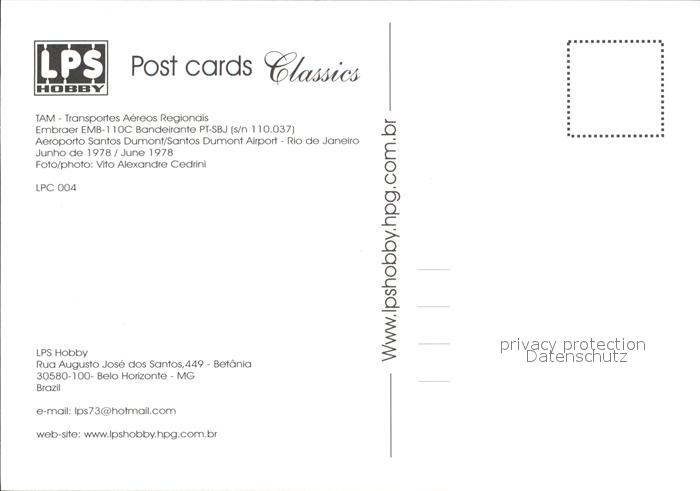 Flugzeuge Zivil TAM Embraer EMB-110C Bandeirante PT-SBJ s/n 110.037 postalisch nicht gelaufen Erhaltung siehe scans