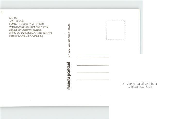 Flugzeuge Zivil TAM Fokker F-100 11451 PT-MRJ postalisch nicht gelaufen Erhaltung siehe scans