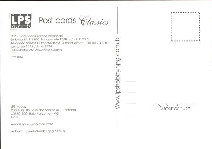 Flugzeuge Zivil TAM Transportes Aereas Regionals Embraer EMB-110C Bandeirante PT-SBJ s/n 110.037 postalisch nicht gelaufen Erhaltung siehe scans