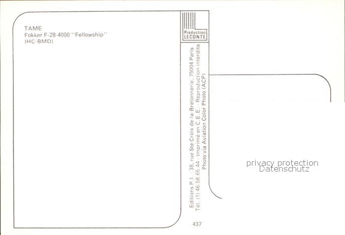 Flugzeuge Zivil TAME Fokker F-28 4000 Fellowship HC-BMD postalisch nicht gelaufen Erhaltung siehe scans