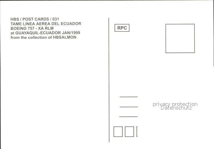 Flugzeuge Zivil Tame Linea Aerea del Ecuador Boeing 757 XA-RLM postalisch nicht gelaufen Erhaltung siehe scans