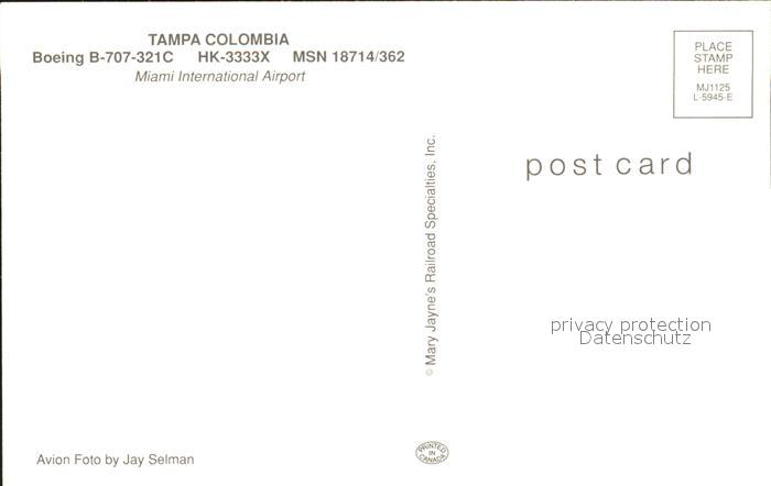 Flugzeuge Zivil Tampa Colombia Boeing B-707-321C HK-3333X MSN 18714/362 postalisch nicht gelaufen Erhaltung siehe scans