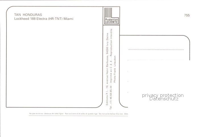 Flugzeuge Zivil Tan Honduras Lockheed 188 Electra HR-TNT postalisch nicht gelaufen Erhaltung siehe scans