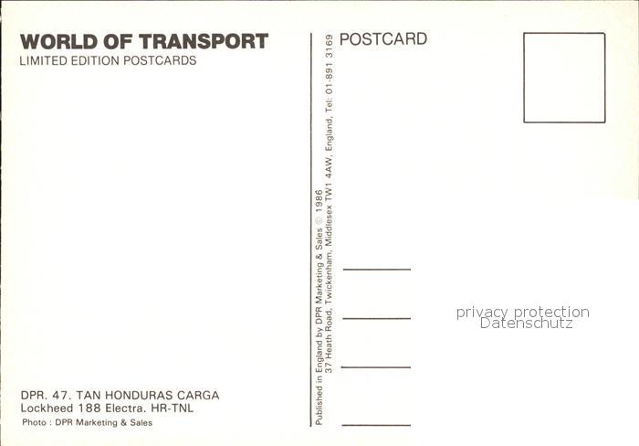Flugzeuge Zivil TAN HondurasCFarga Lockheed 188 Electra HR-TNL postalisch nicht gelaufen Erhaltung siehe scans