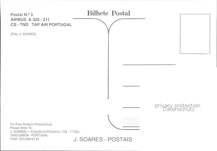 Flugzeuge Zivil TAP Air Portugal Airbus A-320-211 CS-TND postalisch nicht gelaufen Erhaltung siehe scans