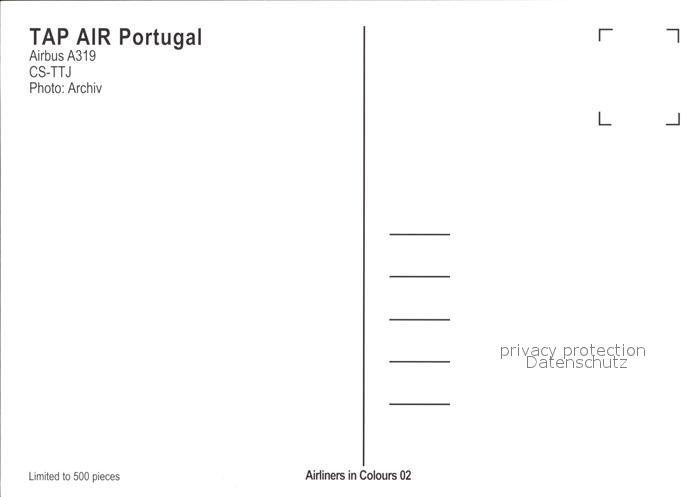 Flugzeuge Zivil TAP AIR Portugal Airbus A319 CS-TTJ postalisch nicht gelaufen Erhaltung siehe scans